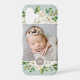 Affordable custom printed phone cases personalised with your photos and text. This pretty feminine design has a painted floral border in shades of white, green and gold on mint background. Add your own custom photo and personalise it with your monogram initial or other custom text in a circle frame. Use the design tools to choose any background colour, edit the text fonts and colours and add more photos to create a one of a kind monogrammed photo case for your device.