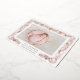 Elegant birth announcements feature your favourite horizontal or landscape orientated newborn photo wrapped in gold foil botanical branches and foliage. Baby's name, birth stats, and your family signature appear beneath. Add six additional photos to the back in a collage layout, or delete to leave blank.