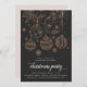 Invite your loved ones or your company employees to a holiday celebration with this elegant Christmas party invitation, suitable for corporate functions or social gatherings. Design features a deep charcoal grey background with an illustration of Christmas ornaments and snowflakes in faux rose gold foil. Personalise with your party details beneath.