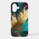 This sophisticated abstract artwork centers on a single gilded feather, rendered in luminous gold against a dramatic backdrop of deep teal, black, and rich jewel tones. The metallic texture of the feather catches the eye immediately, symbolizing lightness, freedom, and quiet strength, while expressive brushstrokes and layered color fields create depth and modern contrast.
