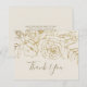 This gilded floral cream and gold thank you card is perfect for an elegant wedding. The modern boho design features a whimsical arrangement of faux gold foil hand drawn flowers, leaves and botanicals on a cream background. Personalize the back of the flat card with your names, and a thank you message. Alternatively, leave the thank you message template section blank to hand write a thoughtful personalized note on each card after they arrive. These cards can be used for a wedding, bridal shower, or any special event.