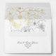 Simple, elegant, modern, boho wedding 5x7 envelope with unique, sophisticated silver and gold floral lace and return address.