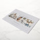 A modern and elegant Christmas holiday card design featuring three square photos aligned side by side on a pale grey background dotted with silver foil pine trees. Personalise with your custom holiday greeting, family name and the year.