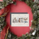 A modern and elegant Christmas holiday card design featuring three square photos aligned side by side on a warm ivory background dotted with rose gold foil pine trees. Personalise with your custom holiday greeting, family name and the year.
