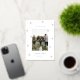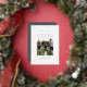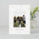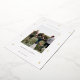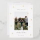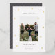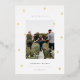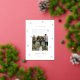 A modern and elegant Christmas holiday card design featuring a single vertical photo on a white background dotted with gold foil pine trees. Personalise with your custom holiday greeting, family name and the year beneath.