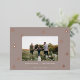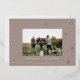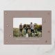 A modern and elegant Christmas holiday card design featuring a horizontal photo on a neutral taupe background dotted with rose gold foil pine trees. Personalise with your custom holiday greeting, family name and the year beneath.