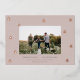 A modern and elegant Christmas holiday card design featuring a horizontal photo on a pale taupe background dotted with rose gold foil pine trees. Personalise with your custom holiday greeting, family name and the year beneath.