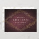 Faux Gilded gold hand drawn botanical foliage floral design in a diamond shape on dark burgundy background, modern and elegant, great save the date card for modern wedding, rustic wedding and fall or winter wedding.