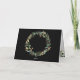These stunning non-photo Christmas cards feature holiday greenery and leaves with faux gold leaves and red holly berries, and a centre gold frame on a modern black background.