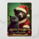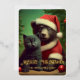 Add a touch of shimmering magic to your season's greetings with this elegant real foil holiday card. The design features a charming Santa bear and a sweet black kitten, with customisable text accented in beautiful foil.
