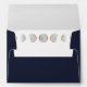 Chic solid navy blue colour 5x7 envelope with return address on back flap. Envelope is lined with elegant gilded watercolor moon phases arrangement.