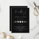 Elegant watercolor gilded moon phases, wedding program. Background features black colour background.