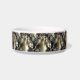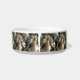 This is a heavy, durable bowl decorated with Tibbies of many colors, the perfect size for hungry/thirsty Tibs. The design is interesting and printing clear.