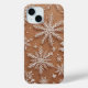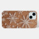 This delicate composition celebrates the intricate beauty of nature through a series of highly detailed snowflakes set against a warm, sandy ochre background. Each snowflake is rendered with fine, lace-like precision in a crisp white, creating a striking contrast that emphasizes their unique hexagonal symmetry. The background features a subtle, speckled texture reminiscent of falling frost or a light dusting of snow, while the overall warm tone lends a sophisticated, vintage holiday aesthetic to the piece. The arrangement is organic yet balanced, capturing a frozen moment of winter elegance.