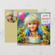 A cute young boy with a vintage appearance, celebrating his birthday. The Greetings on the card are "Happy Birthday", and "Giles". On the back of the card is a small sticker version of the front picture, and plenty of room to write a message. Made with the assistance of AI Bing (Copilot).