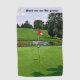 Customise text on Gimme Golf Towel. Design shows golf ball in from cup and flag.