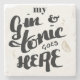 My gin and tonic goes here. Hand lettered saying written in calligraphy with gold coloured design accents. The perfect gift for any G&T lover!