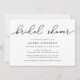 Simple and elegant bridal shower invitation for modern brides-to-be features "bridal shower" across the top in looping black script typography. Personalise with your bridal shower details beneath. A modern bridal shower design in chic black and white for elegant celebrations.