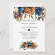 Trendy watercolor floral rehearsal dinner invitation in accents of ginger - brown orange and indigo navy blue.