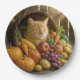 Ginger Cat In a Thanksgiving Cornucopia Paper Plate