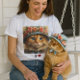 Ginger Cat in Blue Hat with Flowers Cat Lover T-Shirt