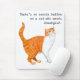 A mousepad with a ginger cat wanting his breakfast from a handpainted watercolour design. The text reads, 'There's no snooze button on a cat who wants breakfast'.