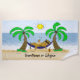 Ginger Cat on Hammock with Palm Trees Sand & Ocean Beach Towel