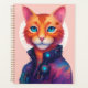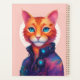 Pictured is a ginger cartoon cat in a colorful cyberpunk design