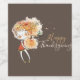 Whimsical ginger haired girl with pumpkin and customisable "Happy Thanksgiving" text on autumn brown background