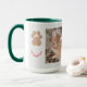 The best therapy for your everyday morning, is a kitten. Make a keepsake with his photo. Two photos of the kitten, humor red text saying, "the best therapist", and the cat's paw, all on a pale grey background, to contrast with the green hunter inside color of mug.