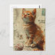 Ginger Kitten Yarn Collage Mixed Media Postcard