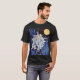 I give wanted to give this a 4 instead of a 5 because these Basic DARK T0shirts run unexpectedly SLIM or Narrow. Which is great if you do not have a potbelly, but I have a paunch. It isn't the shirt's fault that I've got a beer belly. The design and shirt itself is a quality cotton shirt. The color is more of a deep purple, but still a very pretty color. The Basic DARK T-shirts run a bit SLIMMER than the Basic Ts. The neck is a fraction narrower (or seems to be narrower) also. I'm a paunchy middle-aged woman and my neck is 12 inches (31cm) thick and the neckline fell about the same as in the photo of the man, and I had the desire to tug it a bit. So if you're a thick necked man or like loose shirts, be aware these are slimmer shirts. Once I get rid of my lockdown paunch it'll look great. The shirt washed well in cold water with no apparent bleeding. We don't have a dryer, so it hung dry. Did not shrink. Love the colors and the design. The design looks smaller on my shirt than it does on the model on-line. But still, it looks good on the shirt. The printing looks as it does on the model, just the size seems fractionally smaller. Washed garment in cold water, hung dry and design appeared unaffected.