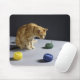 Ginger tabby cat sitting on table mouse mat
