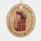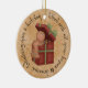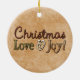Sweet little gingerbread boy is climbing up to peak into a Christmas present wrapped in red with a green ribbon and bow. It says "Wishing you a holiday filled with all your hopes and dreams" in a circle around the edge. The opposite side of the ornament says Christmas Love and Joy. These are both against a mottled tan background making them look very primitive and country. These ornaments make a beautiful quality gift for a friend, co-worker, family member, boss, teacher, etc.