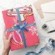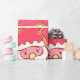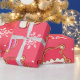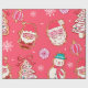 A sweet and festive artwork featuring charming gingerbread style Santa faces, cheerful snowmen, decorated Christmas tree cookies, peppermint candies, ornaments, and delicate snowflakes set against a bright pink background. The playful mix of holiday treats and whimsical details creates a warm, joyful, and delightfully cheerful Christmas vibe.