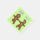 "My leg hurts" - "What?" Funny gingerbread men in parody, spoof, to the bunny rabbits that says "My butt hurts". Cute Christmas Gingerbread men graphic design. With a green background that can be changed to any colours.