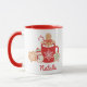 This mug is perfect for drinking hot cocoa during the holidays. The design features a Gingerbread man sitting in a cup of hot cocoa with marshmallows. You can personalise with your name. Coordinates with the Christmas Cookie Exchange collection.