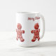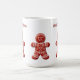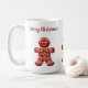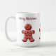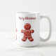 Cute gingerbread man cookie mug with white accents. Festive for holidays. “ Merry Christmas” in brick red coloured script can be edited to a custom name or text of your choice.