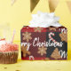 Christmas gingerbread cookies and candy canes on black and red buffalo plaid background with Merry Christmas text.