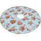 Celebrate in style with this cute gingerbread cookies tree skirt. Perfect for decorating your Christmas or holiday party. Cheerful watercolor illustrations featuring gingerbread cookie figures (a Christmas tree, man with hat, snowman, star, heart, reindeer, house, and Christmas ball) on a blue and white background with snowflakes. Playful and charming, it's the perfect way to set the tone for a fun celebration and wish your loved ones a Merry Christmas.