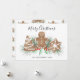 This Gingerbread Cookies Christmas Holiday Card is decorated with watercolor cookies, festive greenery, and red berries. It says Merry Christmas in stylish script typography and has a gingerbread cookie pattern on the back.