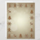Elegant and delicious Christmas illustration: Decorated gingerbread Christmas tree, man and deer with golden stars on a brown bokeh background.