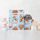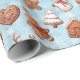 Celebrate in style with this cute gingerbread cookies wrapping paper. Perfect for decorating your Christmas or holiday party. Cheerful watercolor illustrations featuring gingerbread cookie figures (a Christmas tree, man with hat, snowman, star, heart, reindeer, house, and Christmas ball) on a blue and white background with snowflakes. Playful and charming, it's the perfect way to set the tone for a fun celebration and wish your loved ones a Merry Christmas.