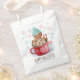Whimsical Christmas favour bags feature a cute watercolor gingerbread cookie in a knit winter hat enjoying a warm bath in a mug of cocoa with a candy cane and marshmallows and pastel snowflake accents. The "Happy Holidays" greeting and "from the kitchen of...." lines of text can be personalised. Art by KL Stock. Visit my "Gingerbread Cookies & Cocoa" collection for coordinating cards, invitations, party supplies and decor.
