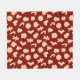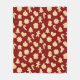 This cute holiday cosy fleece blanket features a pattern of tan gingerbread cookies of stockings, gingerbread men, candy canes, bells, and Christmas trees on a background of burgundy red with white dots. Designed by artist Susan Coffey.