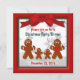 A graphic illustration of a gingerbread family of four on a Christmas Invitation. Original artwork: Copyright Charmaine Paulson