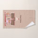 Gingerbread Girl and Christmas Candy House Hand Towel. Adorable gingerbread house and it's proud owner with the biggest eyes and smile inviting you in. The home is boasting of pink frosting and candy canes with a giant ice cream cone on the roof. Edit the greeting to your own choice. If desired, you can change the background colour to match your holiday decor and style.