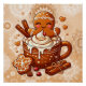 A cosy and adorable gingerbread girl relaxing in a whipped cream-topped hot cocoa, surrounded by festive treats.