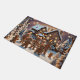 This doormat features a cute Christmas scene of a gingerbread house and gingerbread family with friends. A “sweet” welcome for your guests!