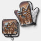 Gingerbread house and cute gingerbread family oven mitt & pot holder set